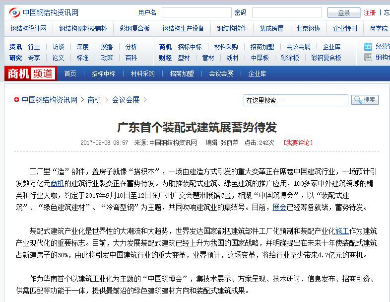 南北潮商城網發布有關2017中國筑博會·廣州開幕式的報道 (2017-10-30)