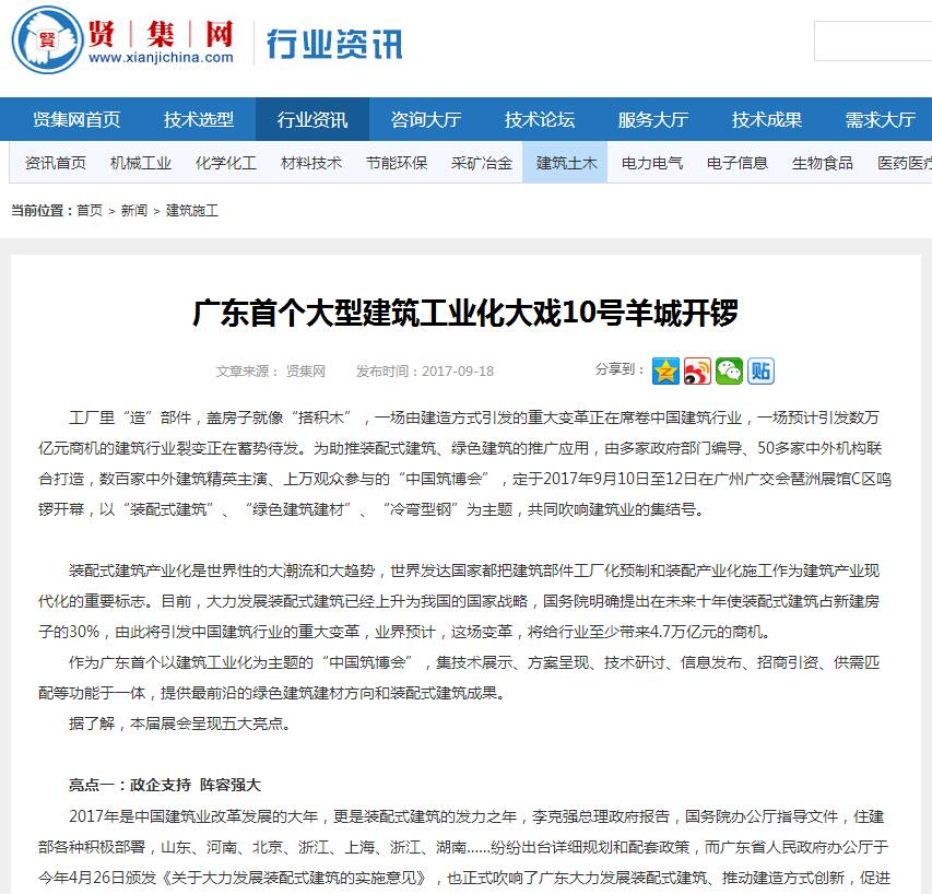 招商寶網發布有關2017中國筑博會·廣州開幕式的報道 (2017-10-30)