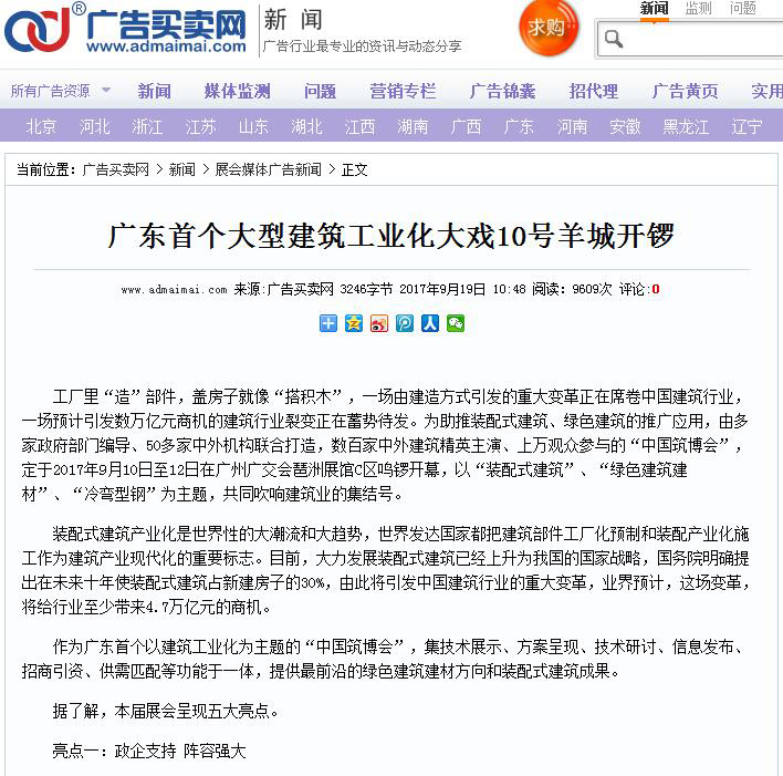 招商寶網(wǎng)發(fā)布有關(guān)2017中國筑博會(huì)·廣州開幕式的報(bào)道 (2017-10-30)