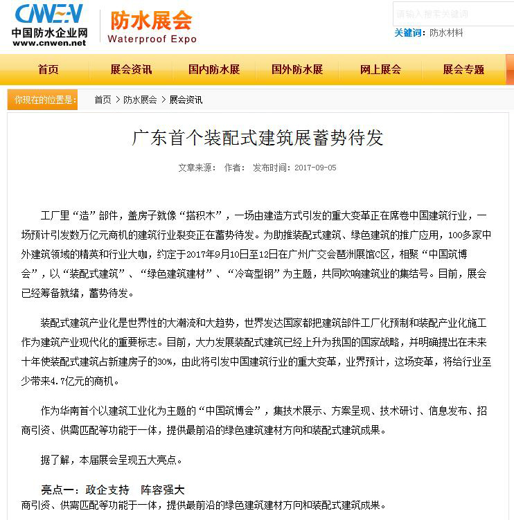 中國建筑工程信息資訊網發布有關2017中國筑博會·廣州開幕式的報道 (2017-10-30)