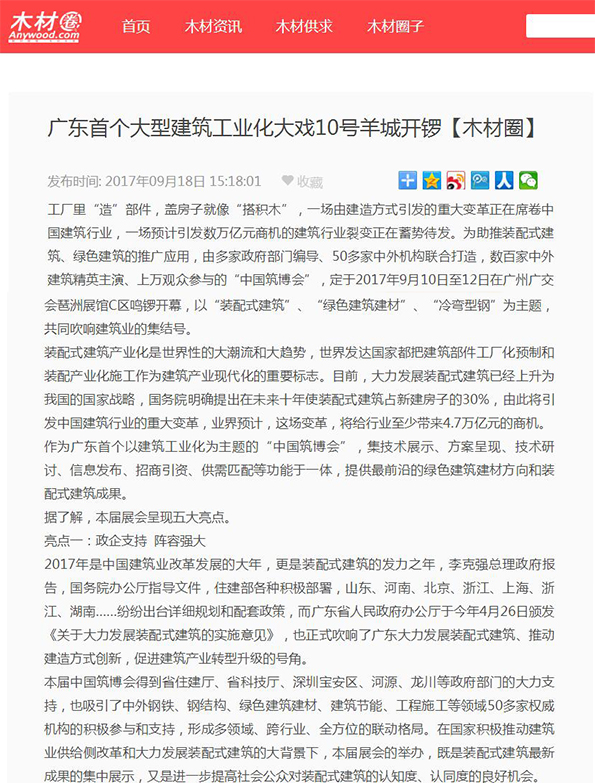 中國木業資源網發布有關2017中國筑博會·廣州開幕式的報道 (2017-10-30)
