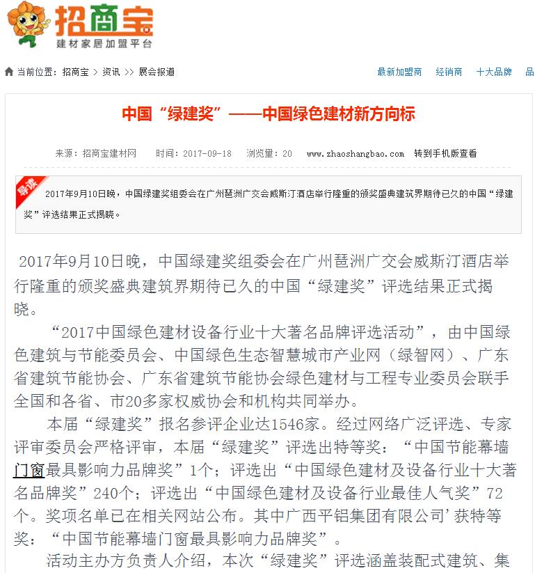 南北潮商城網發布網發布有關2017中國綠色建材設備行業十大著名品牌獎的報道 (2017-10-30)