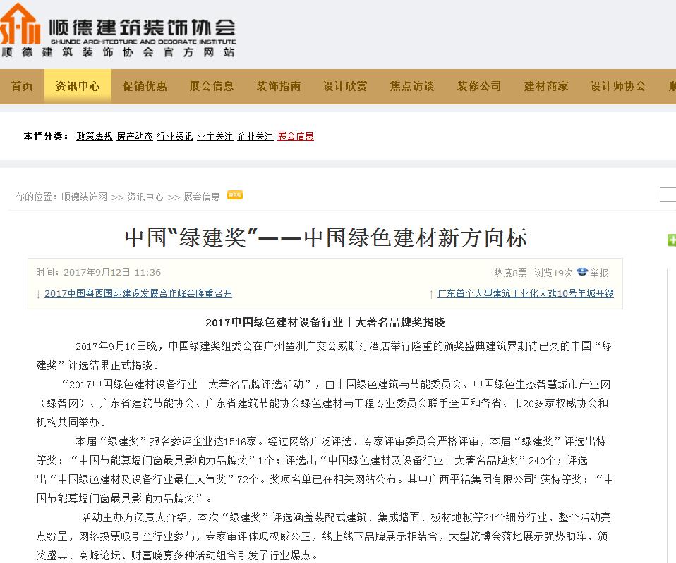 鋁博士網(wǎng)發(fā)布有關(guān)2017中國(guó)綠色建材設(shè)備行業(yè)十大著名品牌獎(jiǎng)的報(bào)道 (2017-10-31)