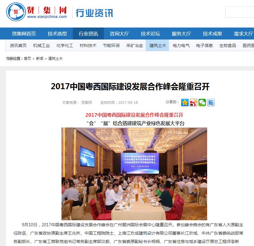 中國建筑工程信息資訊網(wǎng)發(fā)布有關(guān)2017中國粵西國際建設(shè)發(fā)展合作峰會(huì)的報(bào)道 (2017-10-31)