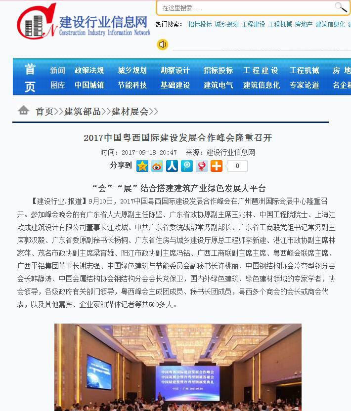 中國門窗幕墻資訊網發布有關2017中國粵西國際建設發展合作峰會的報道 (2017-10-31)
