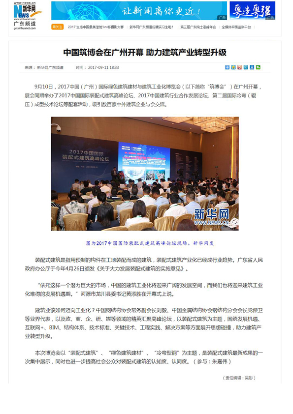 中國幕墻網發布有關2017中國筑博會·廣州的報道 (2017-11-01)