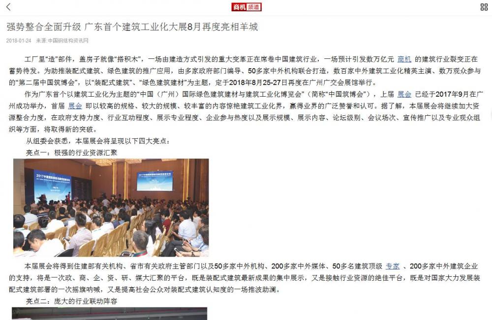 中國工程建設網發布有關2017中國國際裝配式建筑高峰論壇的報道 (2018-01-16)
