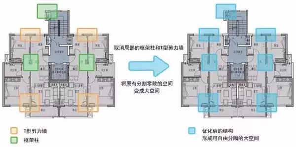 ▲ 優化剪力墻結構設計,取消了框架柱,使得戶型擁有大跨度空間