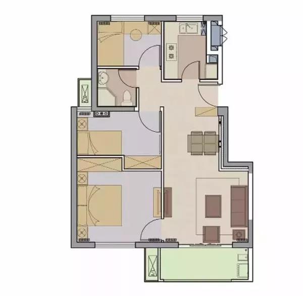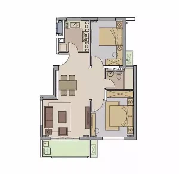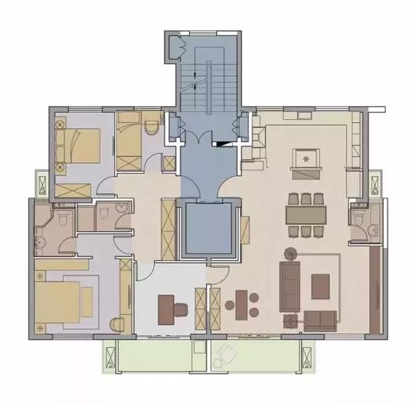 █戶型變化三:合二為一,四房兩廳三衛改善型
