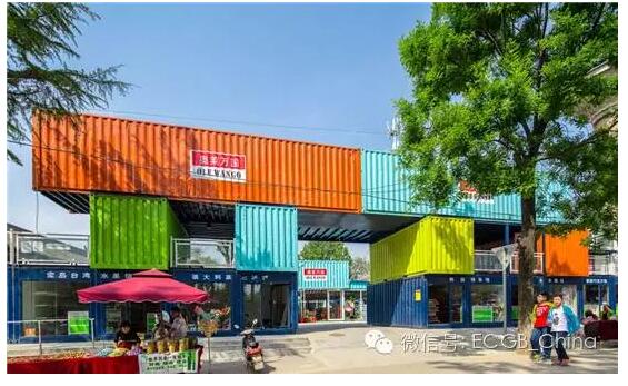 這是一個蠻有意思的集裝箱商業街,位于陜西袁家村。設計師利用52個創意集裝箱搭建了一條特色商業街,內有萬國生活館,日韓生活館,東南亞美食等多個商鋪,吃喝玩樂一應俱全。可以看出,這里的集裝箱被涂成橙色、綠色、黃色、藍色等清新艷麗的色彩,讓整體風格更加多元化。